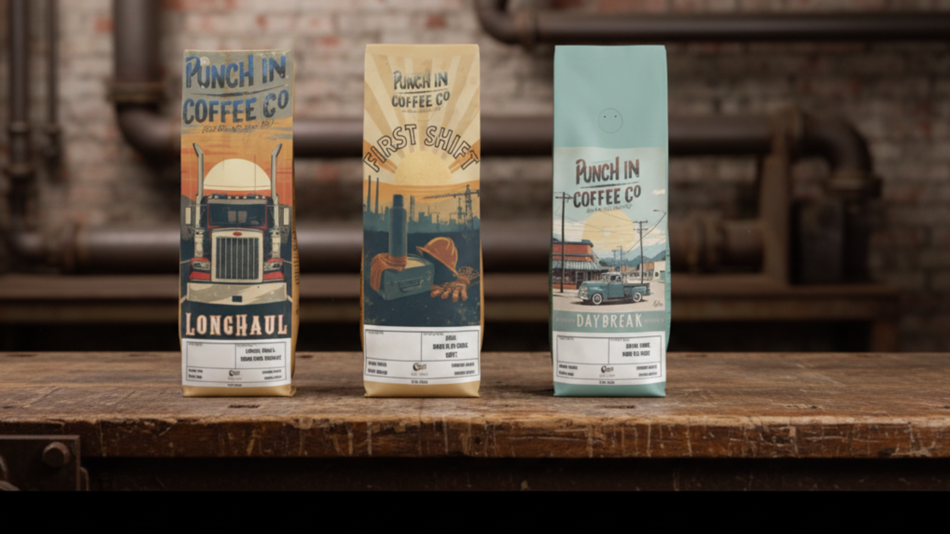 The blue collar community drives our country through hard work and determination. We're here to fuel your shift and keep you going. Whether you're up before the sun or still going long after the sun sets, Punch In Coffee Co. is the coffee for you.